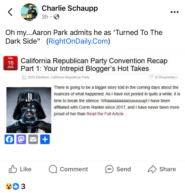Why does it always have to end this waaaaaay? First off, your intrepid blogger would like to thank all of the people that have come forward with color on the events leading up to the convention and at the 2025 CAGOP Convention itself. It is heartening to know that...